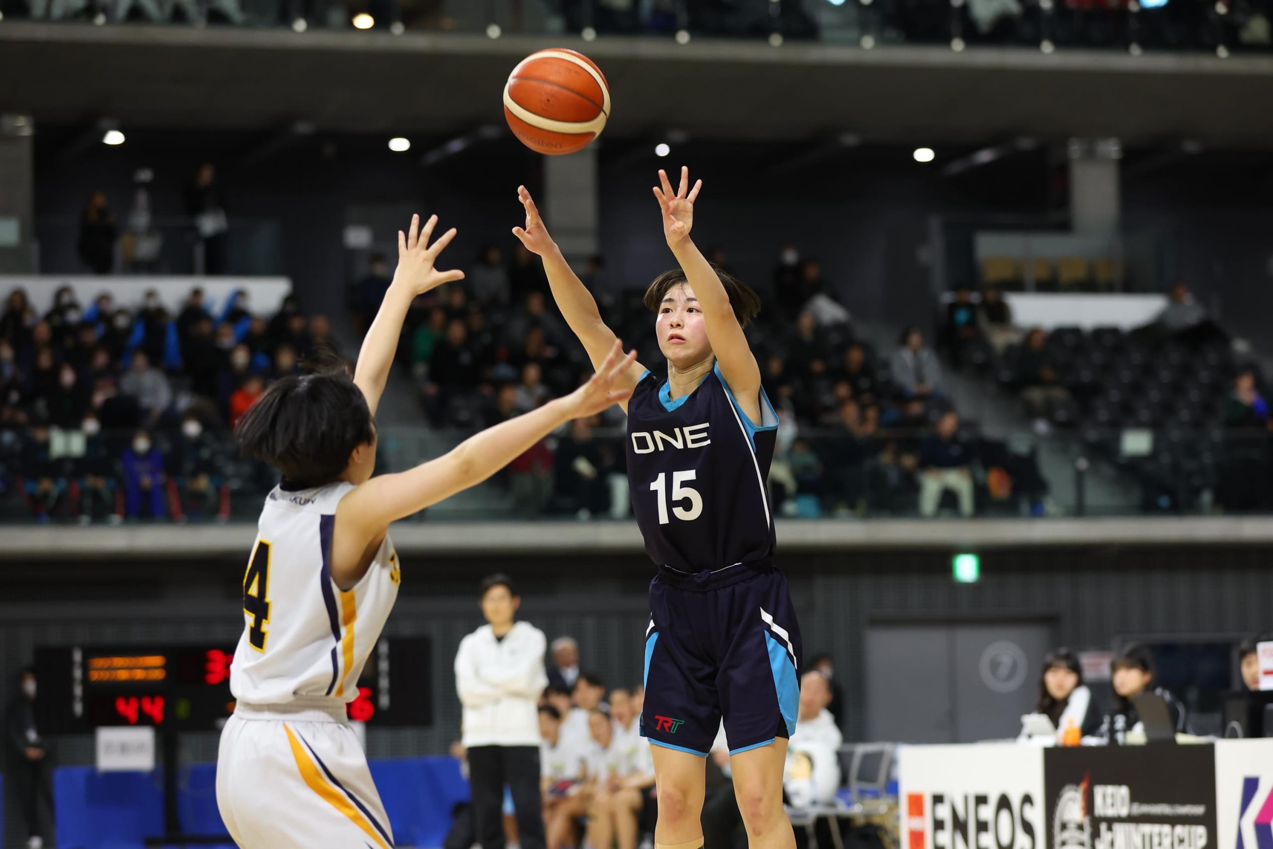 「2025年度 第 6 回 全国U15バスケットボール選手権大会 京王 Jr.ウインターカップ2025-26」女子 3 回戦で、大会 3 連覇を目指す京都精華学園 (京都) に挑んだ ONE (静岡) は、延長戦にもつれ込む大接戦の末に 73-77 で敗れました。